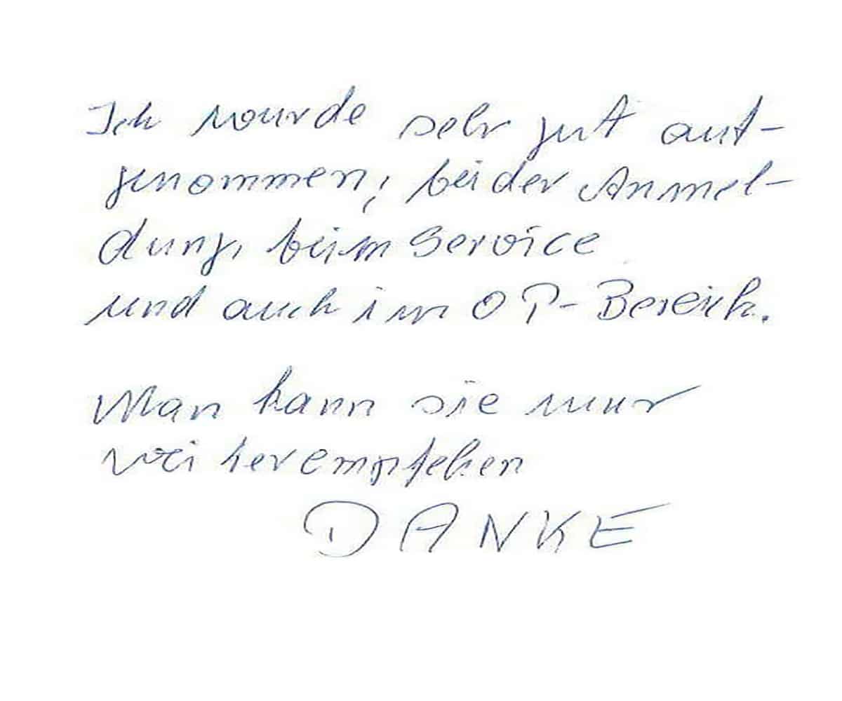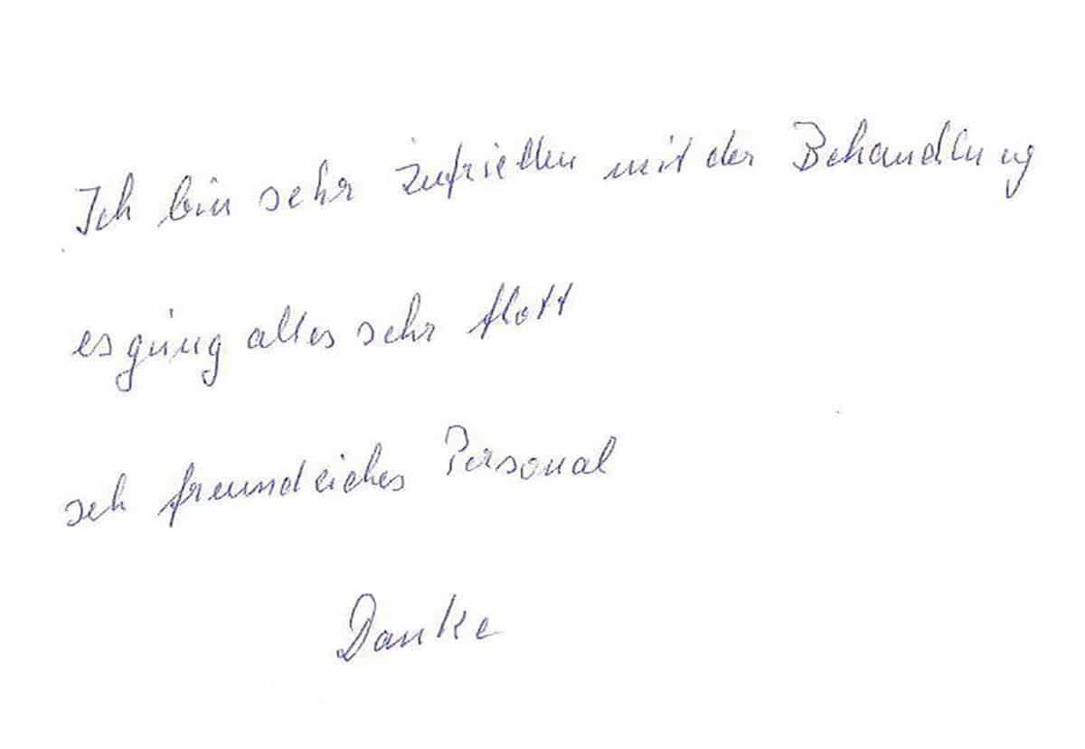 Nur, wenn Sie als unsere Patientin/unser Patient so zufrieden sind, dass Sie uns weiter empfehlen, dann sind auch wir zufrieden!